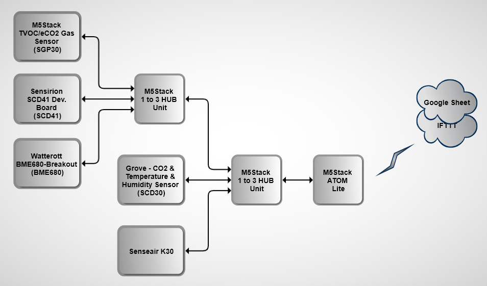 Ich habe meine Messanordnung mit dem Sensor K30 erweitert und vergleiche die Messwerte mit denen der SensorenSGP30 und SCD30 von Sensirion.