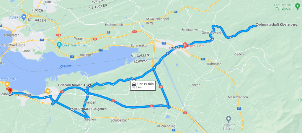 Nach dem Aufladen der Batterie habe ich eine Testfahrt unternommen, um den Übergang von einer Funkzelle zur anderen zu testen. Die Route ist im Bild gezeigt und die Kommunikation hat funktioniert.