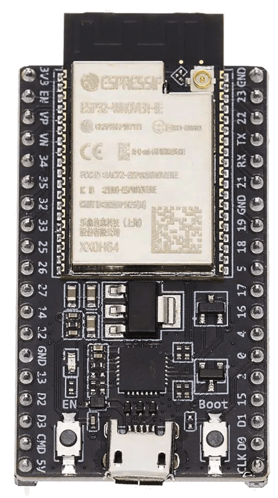 An ESP32 MQTT broker can be installed on different hardware. The following images show an ESP32 DevKit as an example of a module and an XIAO W5500 Ethernet adapter as an example of a simple complete device.