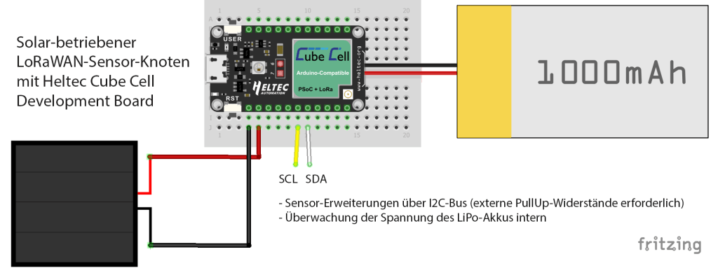 Heltec CubeCell besitzt die komplette Infrastruktur zum Aufbau eines solar-betriebenen LoRaWAN-Knotens on-board.