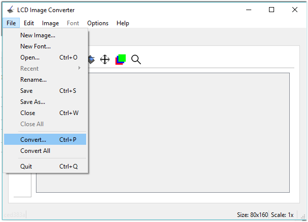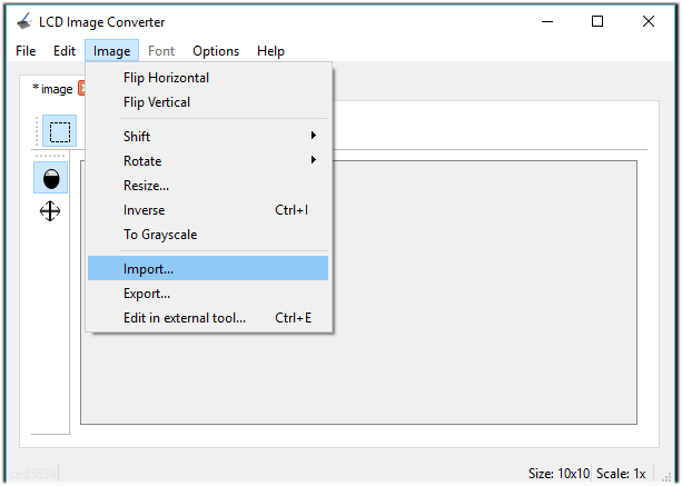 Nach dem Herunterladen und Entpacken des LCD Image Converters kann dieser gestartet werden. Nach dem Start öffnet sich das folgende Fenster und die Option New Image ist auszuwählen.